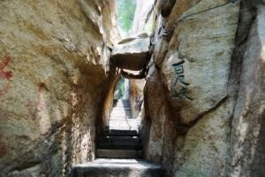 “千尺幢”打通是在汉代。原来的登山路不在今址,而在华山东侧的黄甫峪,即秦昭王令工施钩登华山处,西岳华山高度是多少米,至今在东峰博台下还留有两处石刻。据《七修类编华山》载,莲峰之路本无路可通,因有人从北斗坪望见猿猴上下于崖隙间,探奇者循猴径而登,才发现了此条登山路。杜甫诗中对“千尺幢”只是简单的提到过:“车厢入谷无归路,箭括通天有一门。”解放后游人逐年增多,道路曾作过两次大的修整。后在千尺幢、百尺峡处,又各开辟海拔了一条复道,分别为上行道和下行道。[19][20]